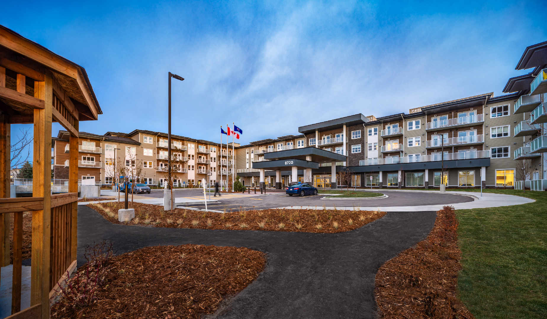 The Revera Scenic Grande is a retirement community in Calgary’s NW community of Scenic Acres. The building encompasses 205 suites, with independent living and assisted living for memory care patients. Blaze Heating and Air Conditioning took on the HVAC scope of this project under the main mechanical contractor, Petrin Mechanical, all supervised by the construction manager Chandos Construction. Our role as the lead HVAC contractor was to manage installation and procurement of all HVAC systems while leading design queries and advising on discussions related to our scope through the construction manager with other stakeholders.